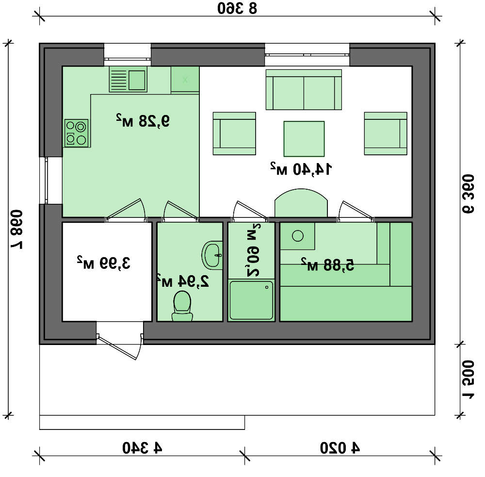 Проект содержит три раздела – Архитектурный, Конструктивный и Инженерный: водоснабжение, отопление, вентиляция, канализация, электроснабжение (приобретается за дополнительную плату) + Пояснительная записка.