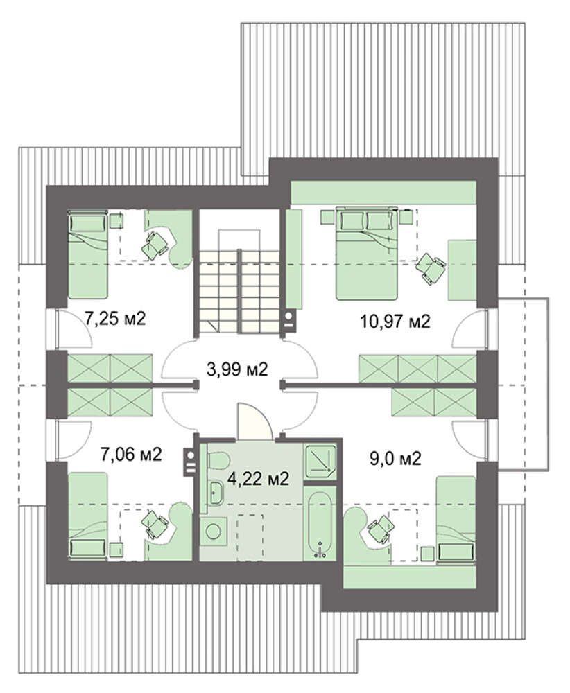 Спальные апартаменты расположены на втором этаже. Четыре комнаты рассчитана на установку мебельного гарнитура. Особо удобными их делают собственные балконы. Из каждой спальни имеется выход на небольшое пространство, здесь с комфортом можно устроить утреннее чаепитие или романтический ужин на закате дня.