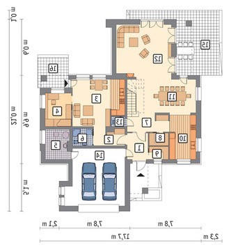 • лаконичный декор в виде облицовки кирпичом гаража и фрагментарно поверхности стен;