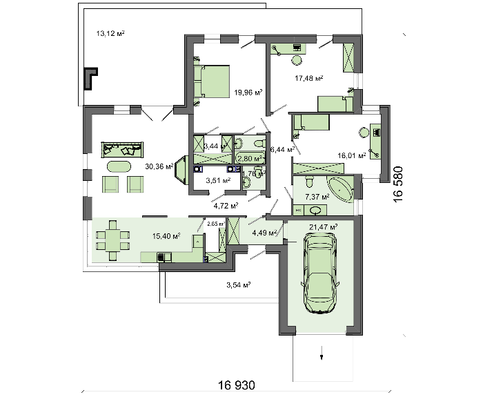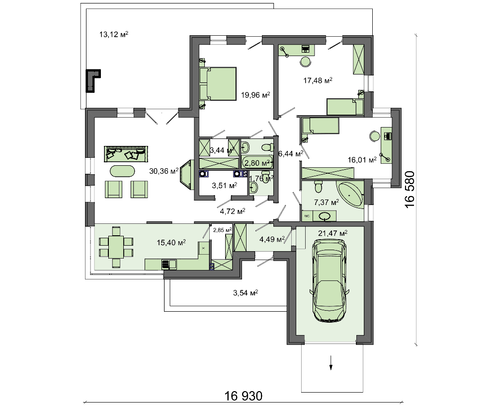 • 4M786 Оригинальный одноэтажный дом в стиле хай тек