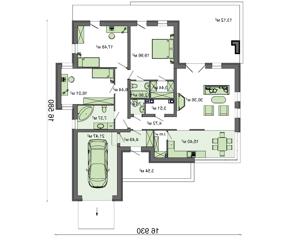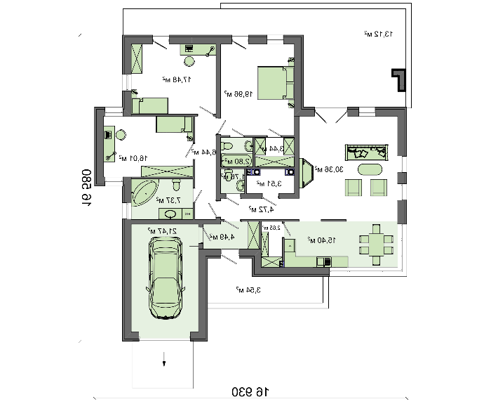 • 4M786 Оригинальный одноэтажный дом в стиле хай тек
