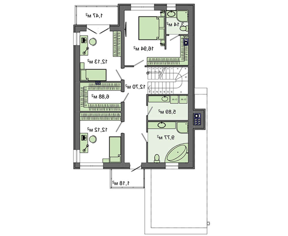 Спальных апартаментов три, все они на втором этаже. Комнаты отличаются размерами и степенью благоустройства. Особые привилегии даны спальне хозяина,в ней предусмотрен отдельный гардероб и санузел.