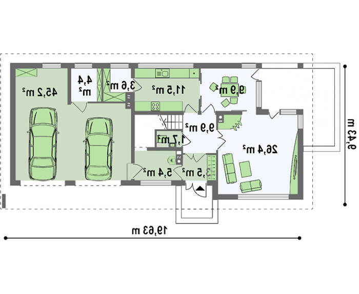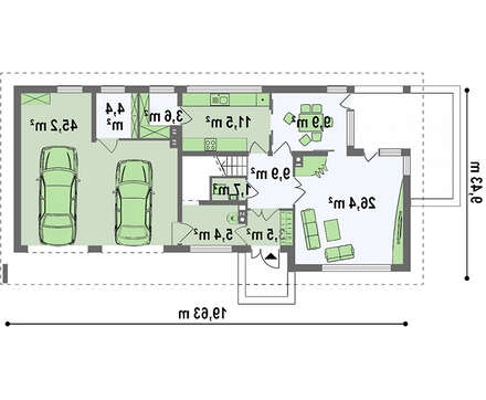 Мужская часть семьи по достоинству оценит гараж на две большие машины и святая  святых — автомастерскую, уединенное расположение которой никому не позволит нарушить покой автомастера.