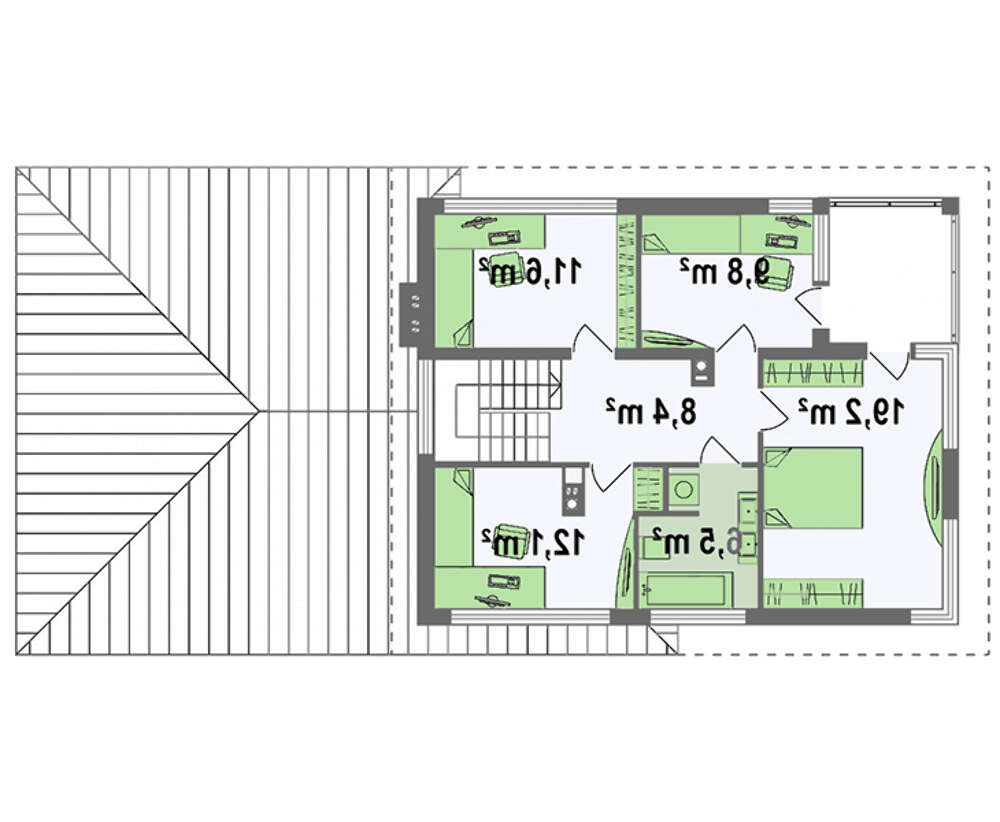 • 4M155a Современный двухэтажный коттедж с гаражом в пристройке