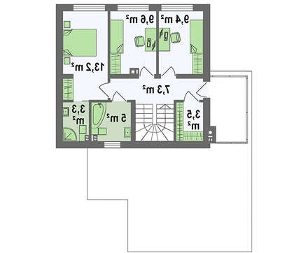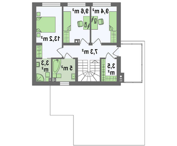 Личных комнат три, все они на втором этаже. Особо выделены хозяйские покои. Среди их преимуществ большая площадь и собственный санузел.