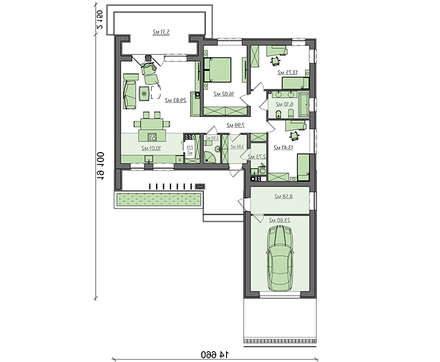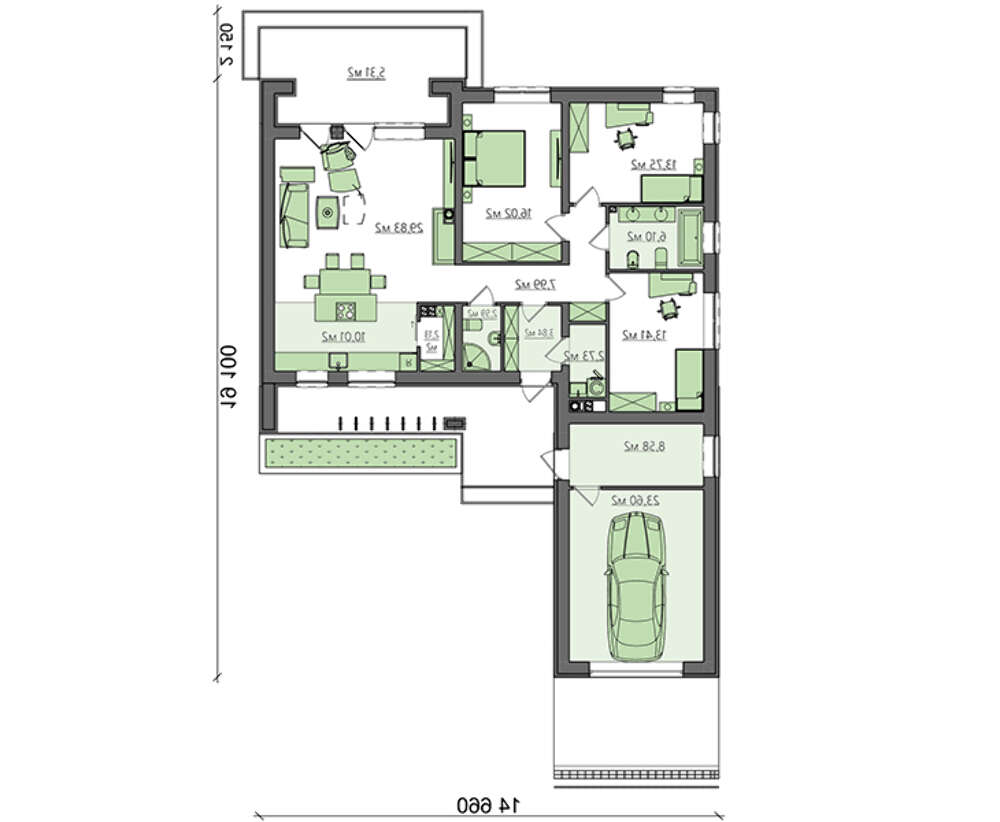 Проект содержит три раздела – Архитектурный, Конструктивный и Инженерный: водоснабжение, отопление, вентиляция, канализация, электроснабжение (приобретается за дополнительную плату) + Пояснительная записка.
