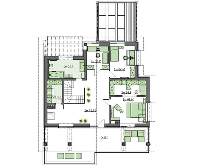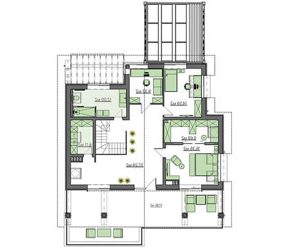 Проект содержит три раздела – Архитектурный, Конструктивный и Инженерный: водоснабжение, отопление, вентиляция, канализация, электроснабжение (приобретается за дополнительную плату) + Пояснительная записка.