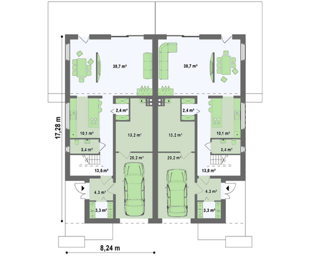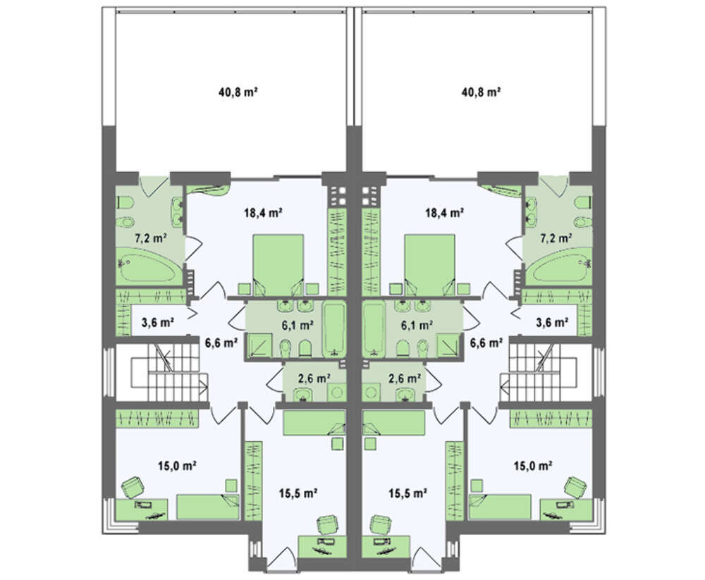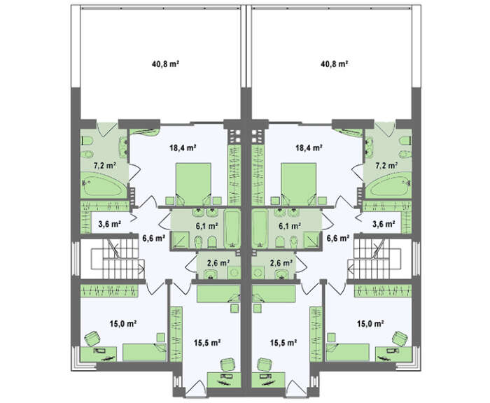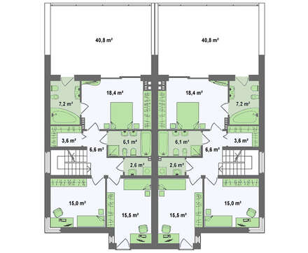 • 4M564 Современный стильный дом на две семьи с просторными балконами на втором этаже