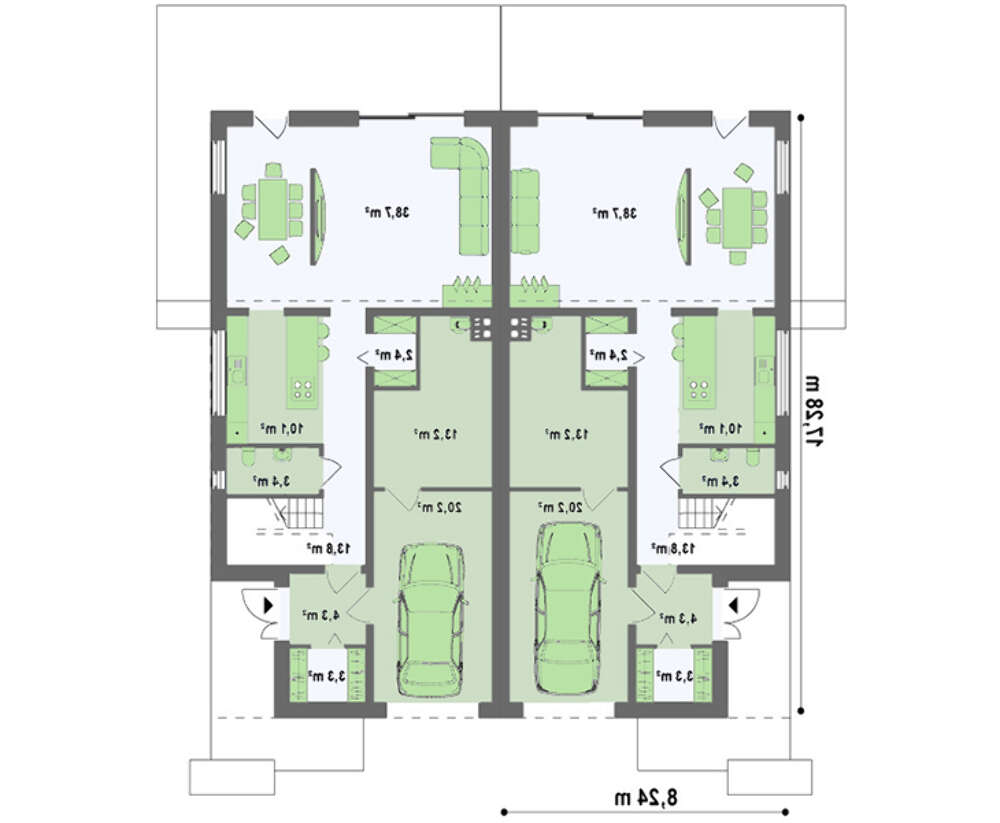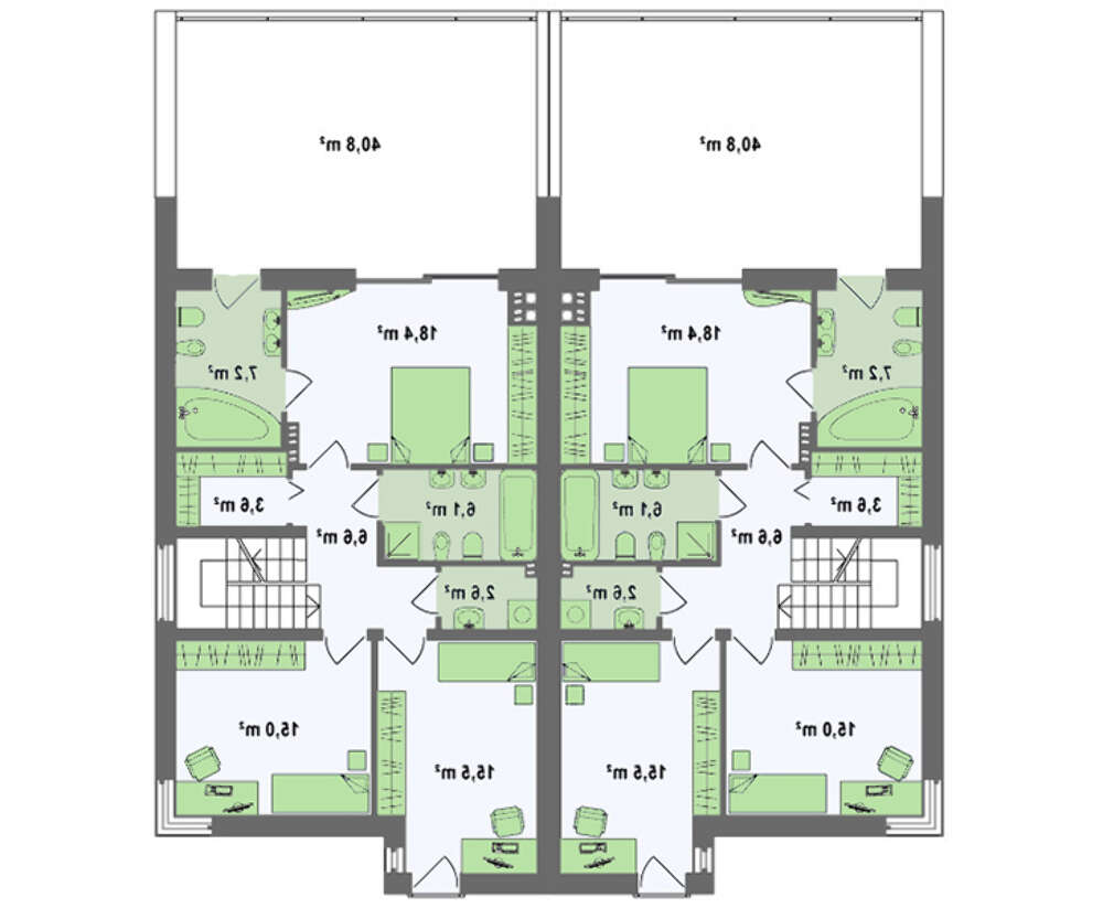 • 4M564 Современный стильный дом на две семьи с просторными балконами на втором этаже