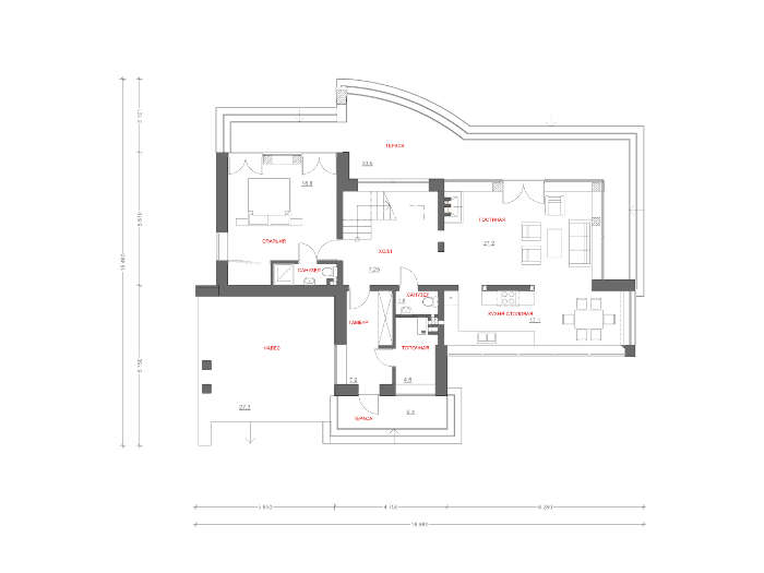 Проект содержит три раздела – Архитектурный, Конструктивный и Инженерный: водоснабжение, отопление, вентиляция, канализация, электроснабжение (приобретается за дополнительную плату) + Пояснительная записка.