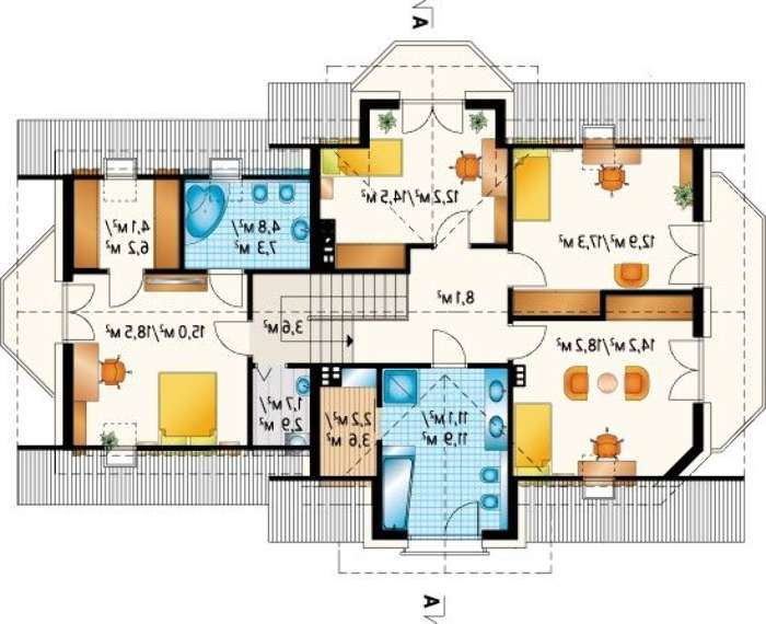 Под личные помещение отдан второй этаж. Санузел отделен от ванной. Под водные процедуры отведено большое двухкомнатное помещение, здесь можно разместить самое новое оборудование. Особого внимания заслуживают спальни, их четыре. Отличаются по площади, планировке, но все имеют выходы на балконные пространства. Хозяйские апартаменты максимально благоустроены. Двухкомнатное исполнение и собственный санузел делают и особо интересными.