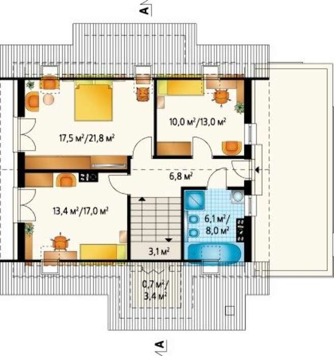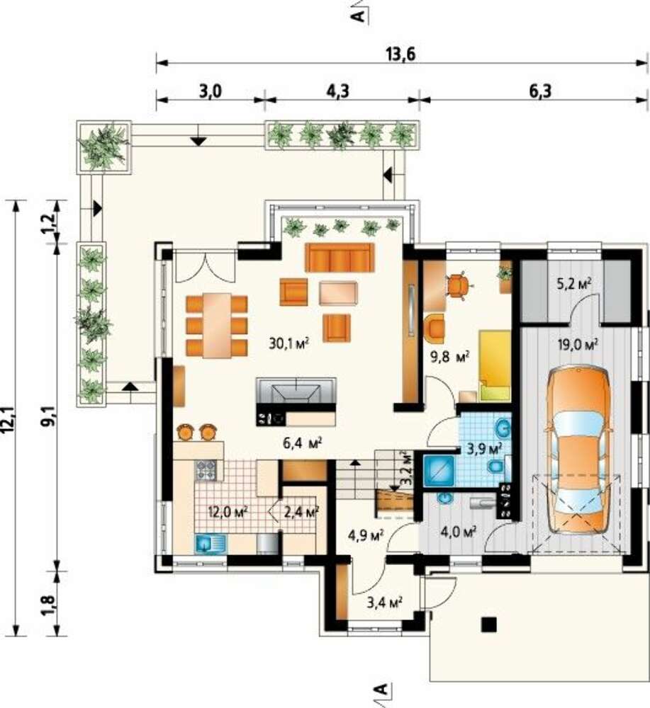 Проект содержит три раздела – АрхитектурныйКонструктивный и Инженерный: водоснабжение, отопление, вентиляция, канализация, электроснабжение (приобретается за дополнительную плату) + Пояснительная записка.