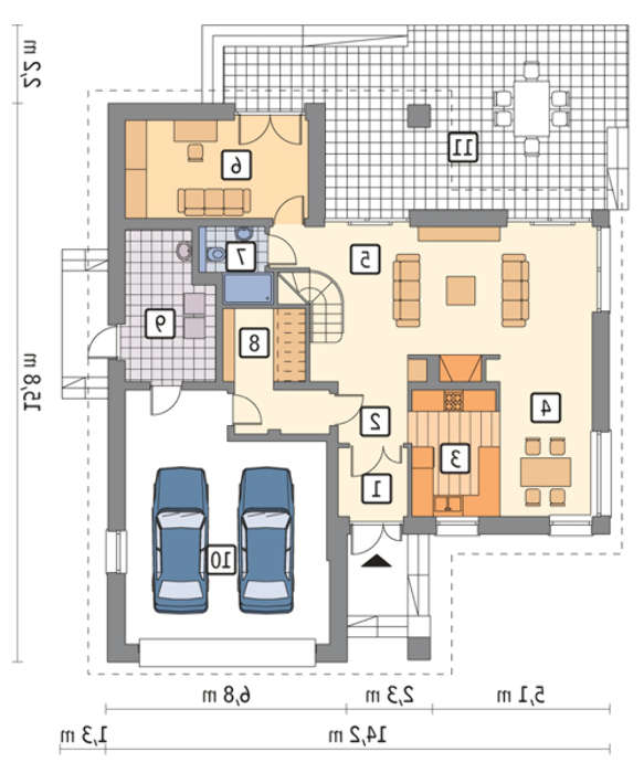 Проект содержит три раздела – АрхитектурныйКонструктивный и Инженерный: водоснабжение, отопление, вентиляция, канализация, электроснабжение (приобретается за дополнительную плату) + Пояснительная записка.
