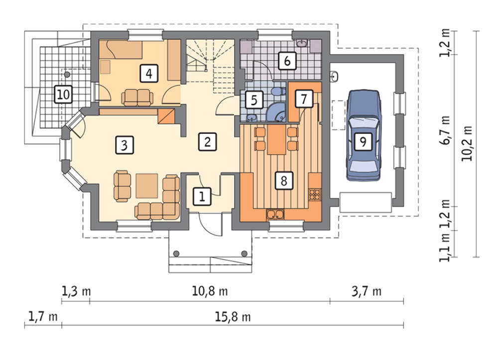 Проект содержит три раздела – АрхитектурныйКонструктивный и Инженерный: водоснабжение, отопление, вентиляция, канализация, электроснабжение (приобретается за дополнительную плату) + Пояснительная записка.