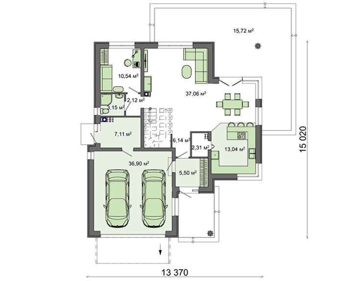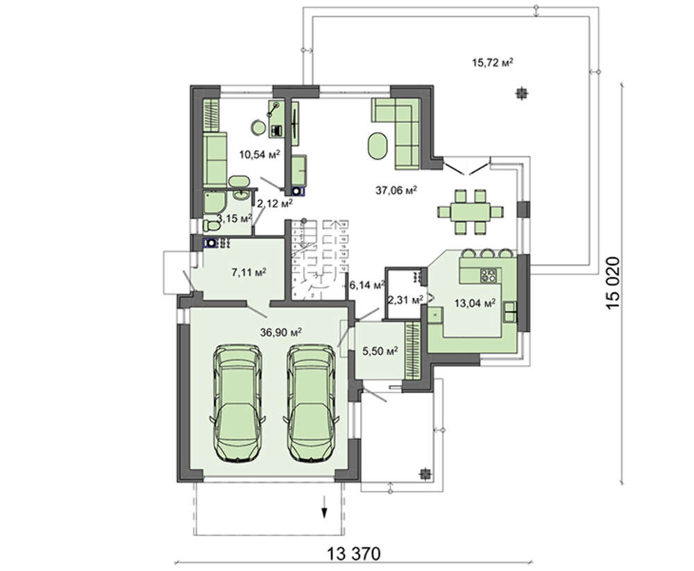Проект содержит три раздела – Архитектурный, Конструктивный и Инженерный: водоснабжение, отопление, вентиляция, канализация, электроснабжение (приобретается за дополнительную плату) + Пояснительная записка.