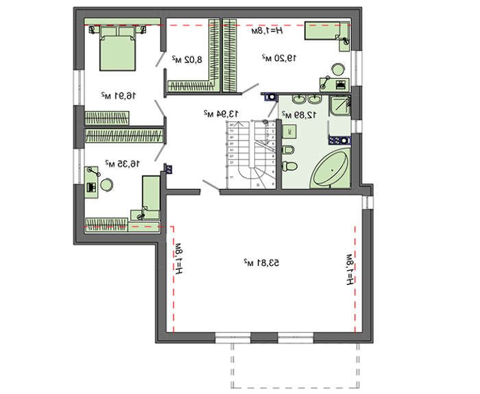 Как будет использована свободная площадь в 40 м2 второго уровня, зависит от желания и фантазии домовладельцев.