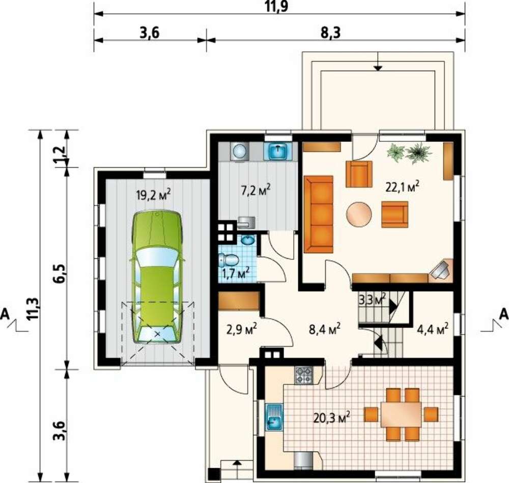 Стильный двухэтажный дом с гаражом площадью 110 м2