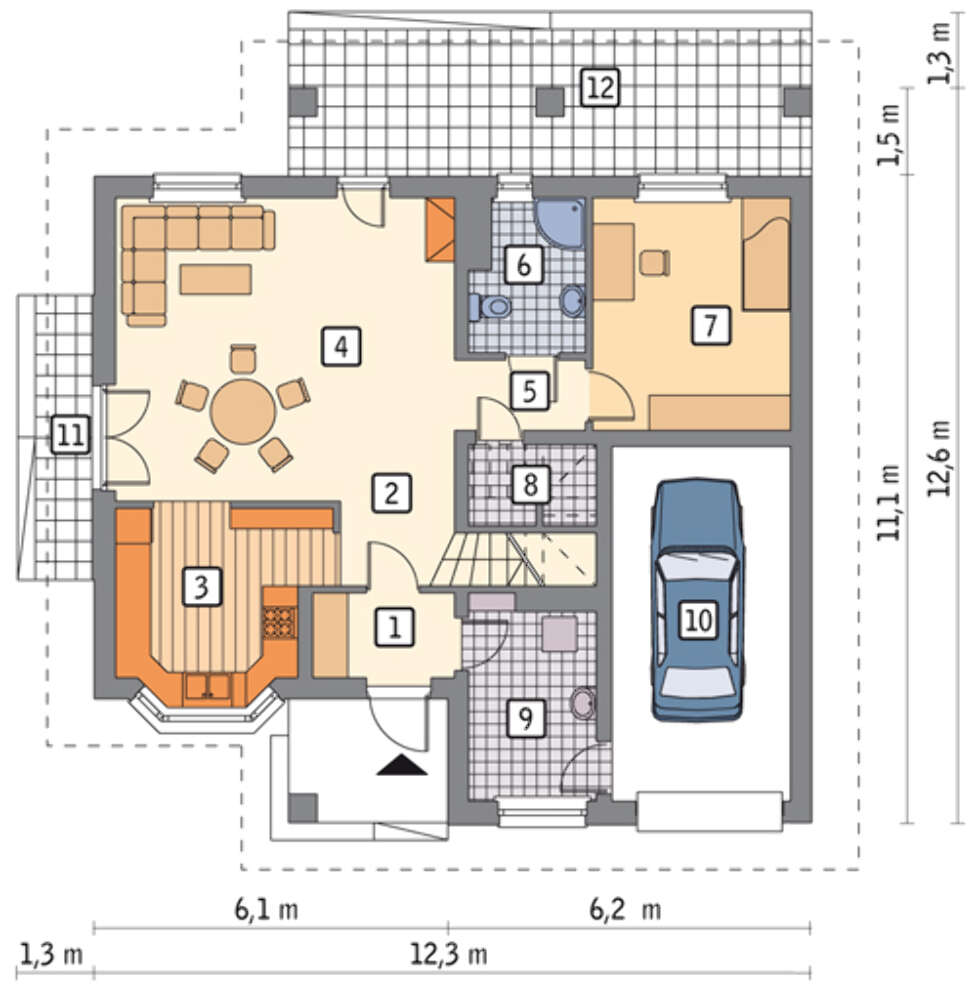 Внутренняя планировка дома, как и положено европейскому жилью, отличается рациональностью. Каждому метру есть функциональное объяснение. Нижний этаж предназначен для общего пользования. Здесь нет укромных уголков, исключение составляет только комната для гостей. Спальню часто выделяют члену семьи преклонного возраста или оборудуют для человека с ограниченными возможностями. Иногда помещение меблируют как кабинет владельца дома.