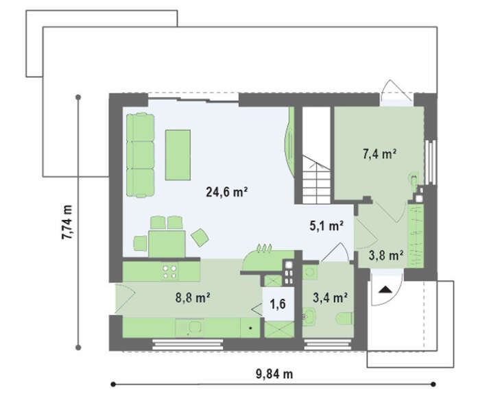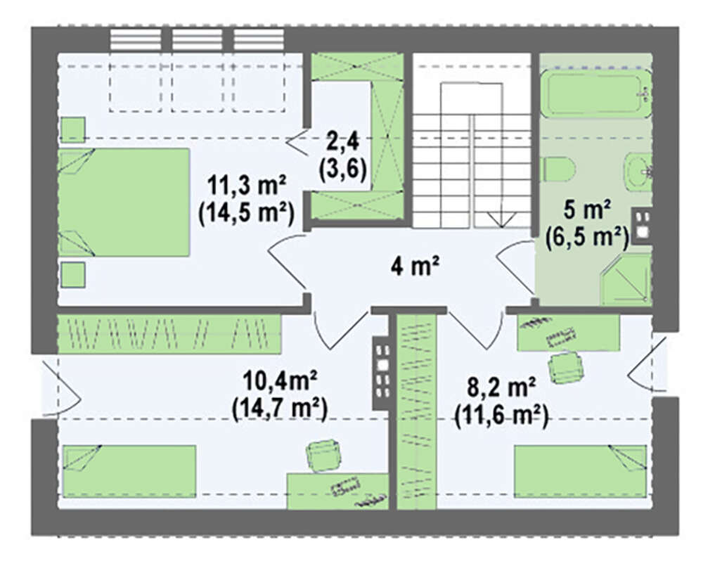Проект содержит три раздела – АрхитектурныйКонструктивный и Инженерный: водоснабжение, отопление, вентиляция, канализация, электроснабжение (приобретается за дополнительную плату) + Пояснительная записка.