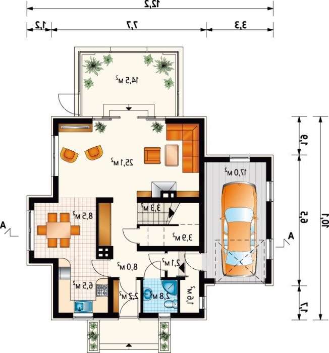 Первый этаж готов к встрече гостей по максимуму. Большое общее пространство условно разделено на зоны, каждая из них позволяет почти уединенно заниматься делами, для которых предназначена. Дополнительные удобства создает гараж, место для которого найдено тут же, под крышею дома.
