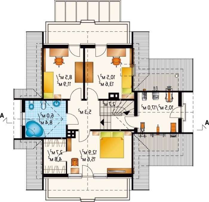 Приятная неожиданность кроется в планировке второго этажа. Размещенные здесь три комнаты позволяют в пространстве поместить всю необходимую мебель для отдыха. Наличие балкончиков пригодится для любования закатами и восходами или романтического поглядывания вдаль при появлении мечтательного настроения.