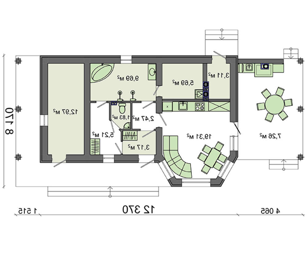 Проект содержит три раздела – АрхитектурныйКонструктивный и Инженерный: водоснабжение, отопление, вентиляция, канализация, электроснабжение (приобретается за дополнительную плату) + Пояснительная записка.