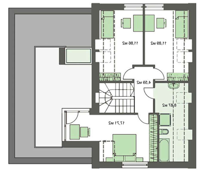 Дополнительной особенность коттеджа стал второй этаж. Он не только включает три спальни удобной планировки. Красивый летний сад на крыше гаража помогает проводить часть времени на свежем воздухе среди экзотических трав и необычных кустарников. Здесь достаточно места для романтических встреч и утреннего чаепития.