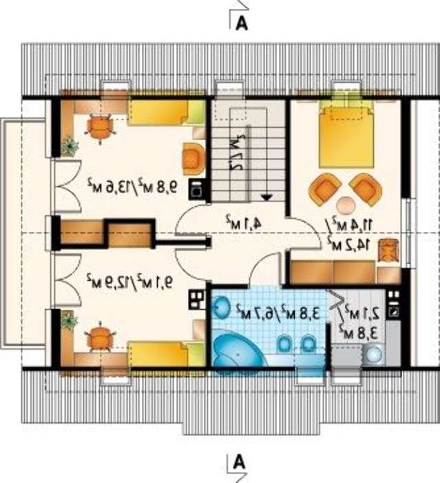 На мансардном уровне размещена личная территория жильцов дома. Здесь расположены 3 спальни, ванная комната с прачечной и небольшой холл.