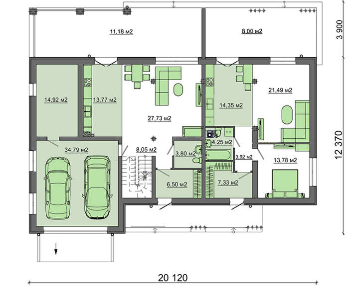 Проект содержит три раздела – Архитектурный, Конструктивный и Инженерный: водоснабжение, отопление, вентиляция, канализация, электроснабжение (приобретается за дополнительную плату) + Пояснительная записка.