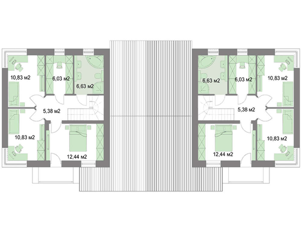 При планировании жилое пространство квартир строго разделено на дневную и ночную зоны. По четыре спальни второго этажа рассчитаны на проживание большой семьи. Просторный балкон поможет разнообразить личную жизнь и внесет в нее дух романтики.