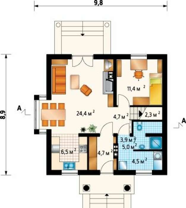 Традиционный проект дома с мансардой 9 на 10 4M3382