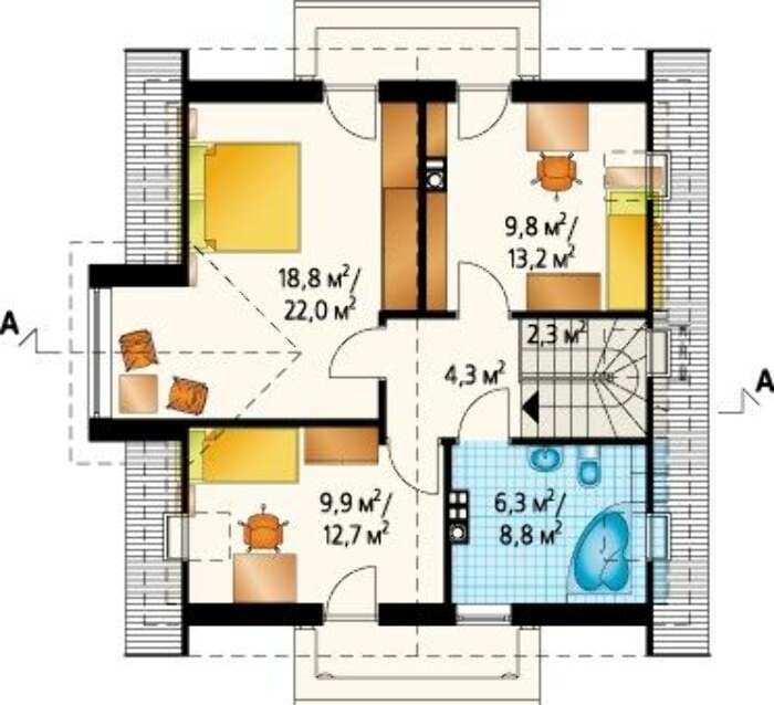 • 4M3382 Традиционный проект дома с мансардой 9 на 10