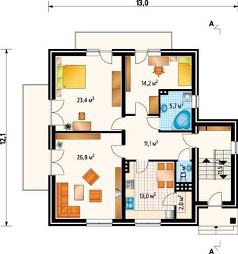 Проект содержит три раздела – АрхитектурныйКонструктивный и Инженерный: водоснабжение, отопление, вентиляция, канализация, электроснабжение (приобретается за дополнительную плату) + Пояснительная записка.