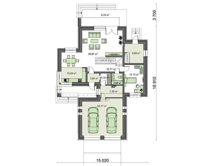 Проект содержит три раздела – Архитектурный, Конструктивный и Инженерный: водоснабжение, отопление, вентиляция, канализация, электроснабжение (приобретается за дополнительную плату) + Пояснительная записка.