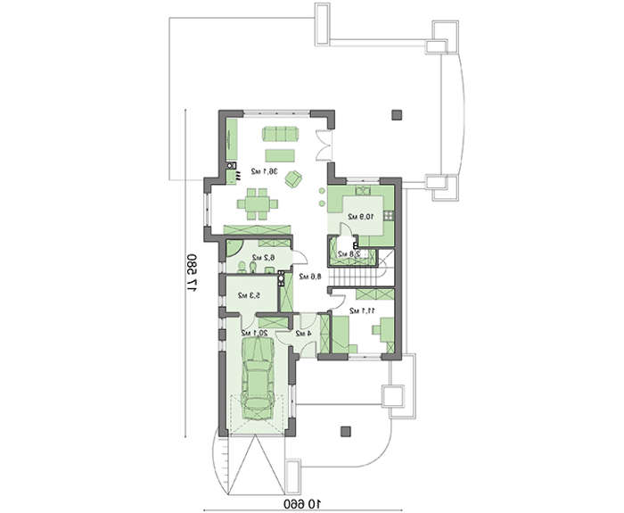 Автолюбитель высоко оценит простор гаража. Здесь достаточно места для хранения автомобиля, предусмотрена площадь под выполнение работ по обслуживанию.
