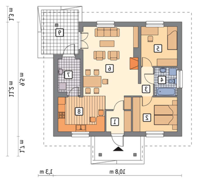 Одноэтажный дом с четырехскатной крышей 4M7123