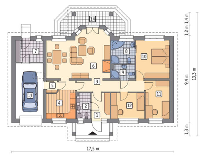 Проект содержит три раздела – АрхитектурныйКонструктивный и Инженерный: водоснабжение, отопление, вентиляция, канализация, электроснабжение (приобретается за дополнительную плату) + Пояснительная записка.