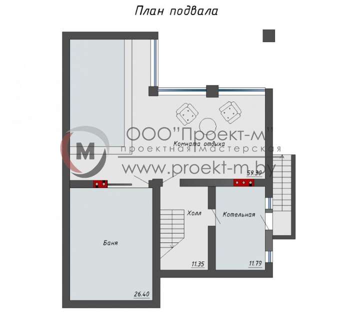 Проект содержит три раздела – Архитектурный, Конструктивный и Инженерный: водоснабжение, отопление, вентиляция, канализация, электроснабжение (приобретается за дополнительную плату) + Пояснительная записка.