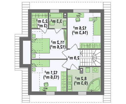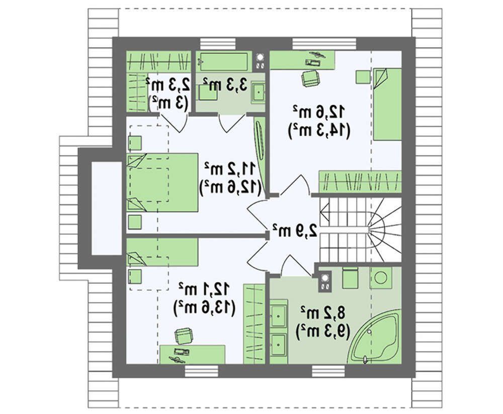 Второй этаж отдан под личную территорию членов семьи. Здесь располагается небольшой холл, две детских спальни, санитарная комната и апартаменты улучшенной планировки с собственным санузлом и гардеробом.