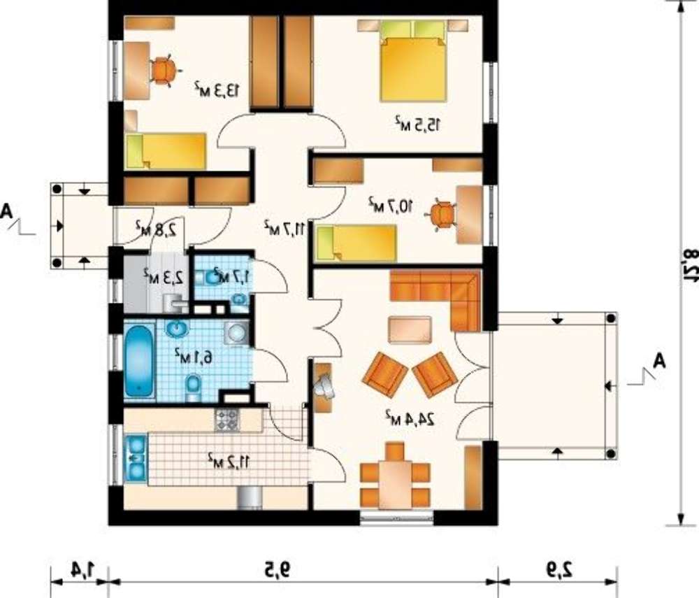 Проект содержит три раздела – АрхитектурныйКонструктивный и Инженерный: водоснабжение, отопление, вентиляция, канализация, электроснабжение (приобретается за дополнительную плату) + Пояснительная записка.