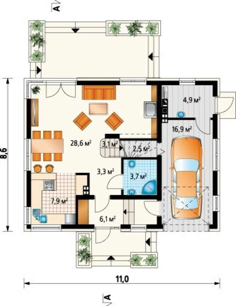 Планировка внутреннего пространства предполагает поэтажное разделение всей площади на дневную и ночную зону.