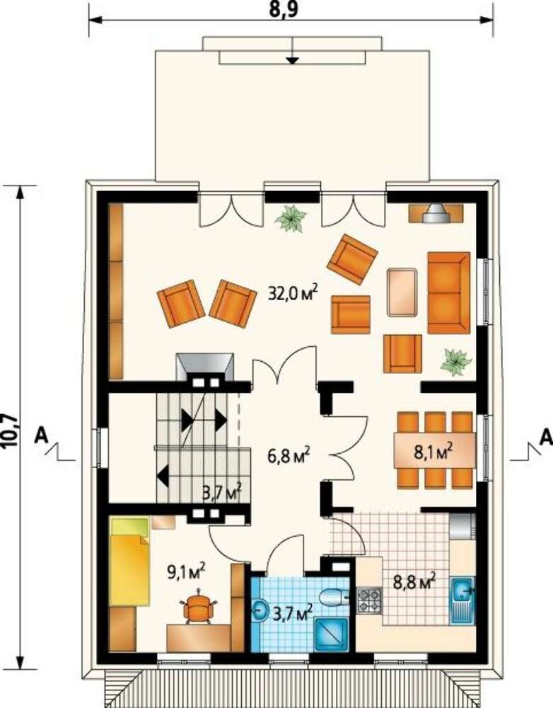 Проект содержит три раздела – АрхитектурныйКонструктивный и Инженерный: водоснабжение, отопление, вентиляция, канализация, электроснабжение (приобретается за дополнительную плату) + Пояснительная записка.