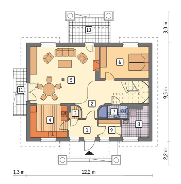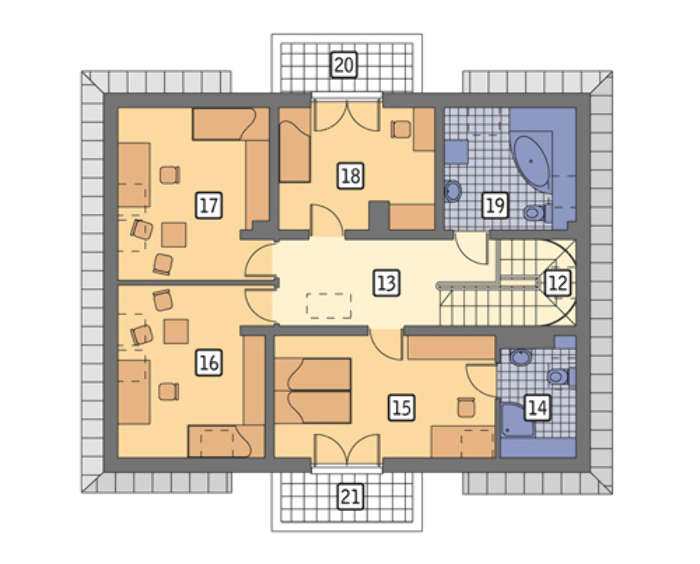 Проект содержит три раздела – АрхитектурныйКонструктивный и Инженерный: водоснабжение, отопление, вентиляция, канализация, электроснабжение (приобретается за дополнительную плату) + Пояснительная записка.
