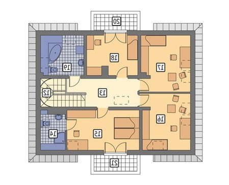 Проект содержит три раздела – АрхитектурныйКонструктивный и Инженерный: водоснабжение, отопление, вентиляция, канализация, электроснабжение (приобретается за дополнительную плату) + Пояснительная записка.