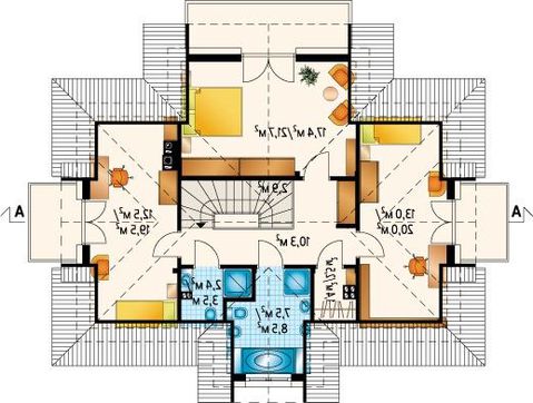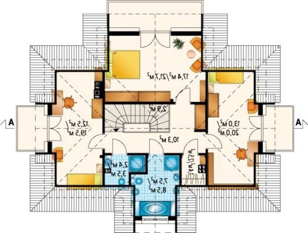 В этот доме есть все. Потрясающе красивая сложная по конструкции крыша за счет цвета и декора зрительно воспринимающаяся как покрытый кружевом шоколад. Аккуратные контрастного цвета наличники. По низу строения орнаментом выложенная кирпичная кладка. Решетчатое ограждение использованное для балконов. Такого декора хватило бы на целый поселок. Здесь же оно все нашло себе место в одном великолепном светлом доме с мансардою. Красивое лучезарное строение гармонично впишется в любой ландшафт.