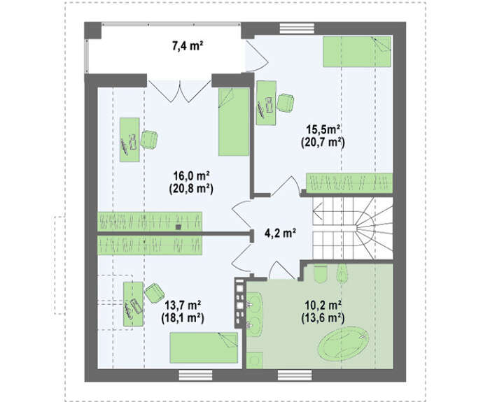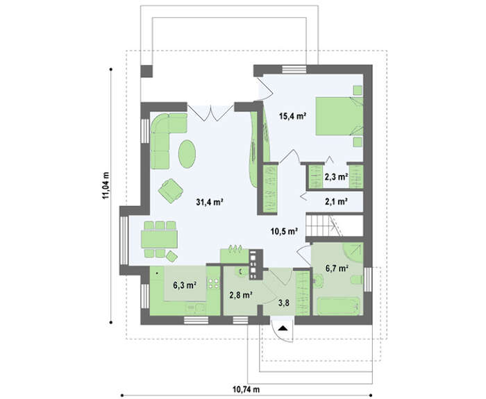 Проект содержит три раздела – АрхитектурныйКонструктивный и Инженерный: водоснабжение, отопление, вентиляция, канализация, электроснабжение (приобретается за дополнительную плату) + Пояснительная записка.