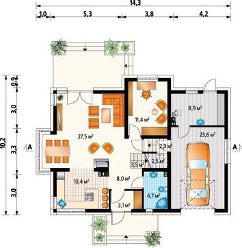 Проект содержит три раздела – АрхитектурныйКонструктивный и Инженерный: водоснабжение, отопление, вентиляция, канализация, электроснабжение (приобретается за дополнительную плату) + Пояснительная записка.