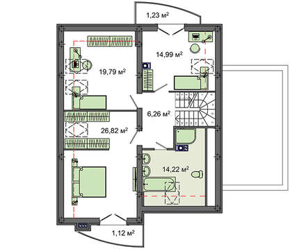 Проект содержит три раздела – Архитектурный, Конструктивный и Инженерный: водоснабжение, отопление, вентиляция, канализация, электроснабжение (приобретается за дополнительную плату) + Пояснительная записка.