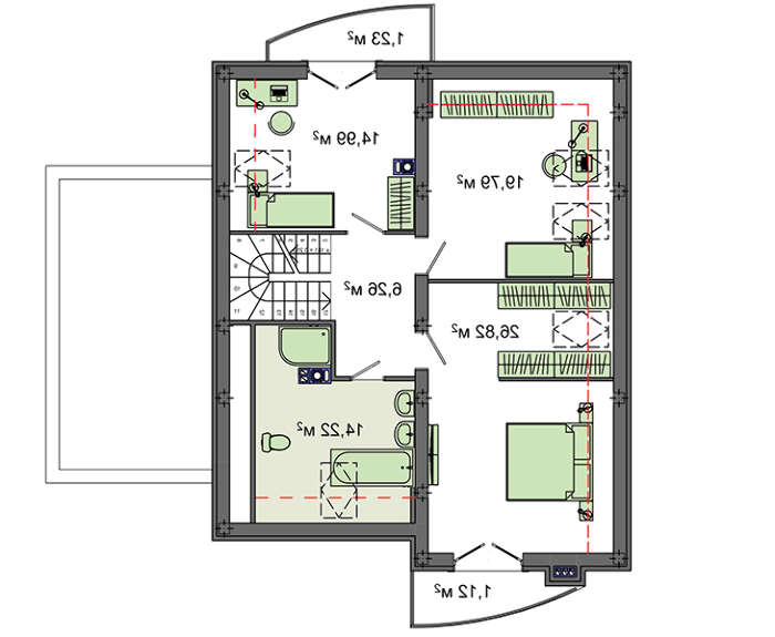 Проект содержит три раздела – Архитектурный, Конструктивный и Инженерный: водоснабжение, отопление, вентиляция, канализация, электроснабжение (приобретается за дополнительную плату) + Пояснительная записка.