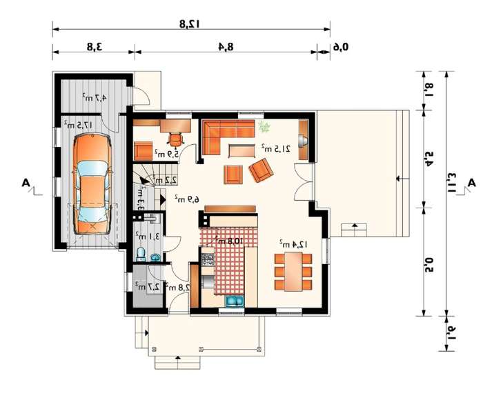 Проект содержит три раздела – АрхитектурныйКонструктивный и Инженерный: водоснабжение, отопление, вентиляция, канализация, электроснабжение (приобретается за дополнительную плату) + Пояснительная записка.